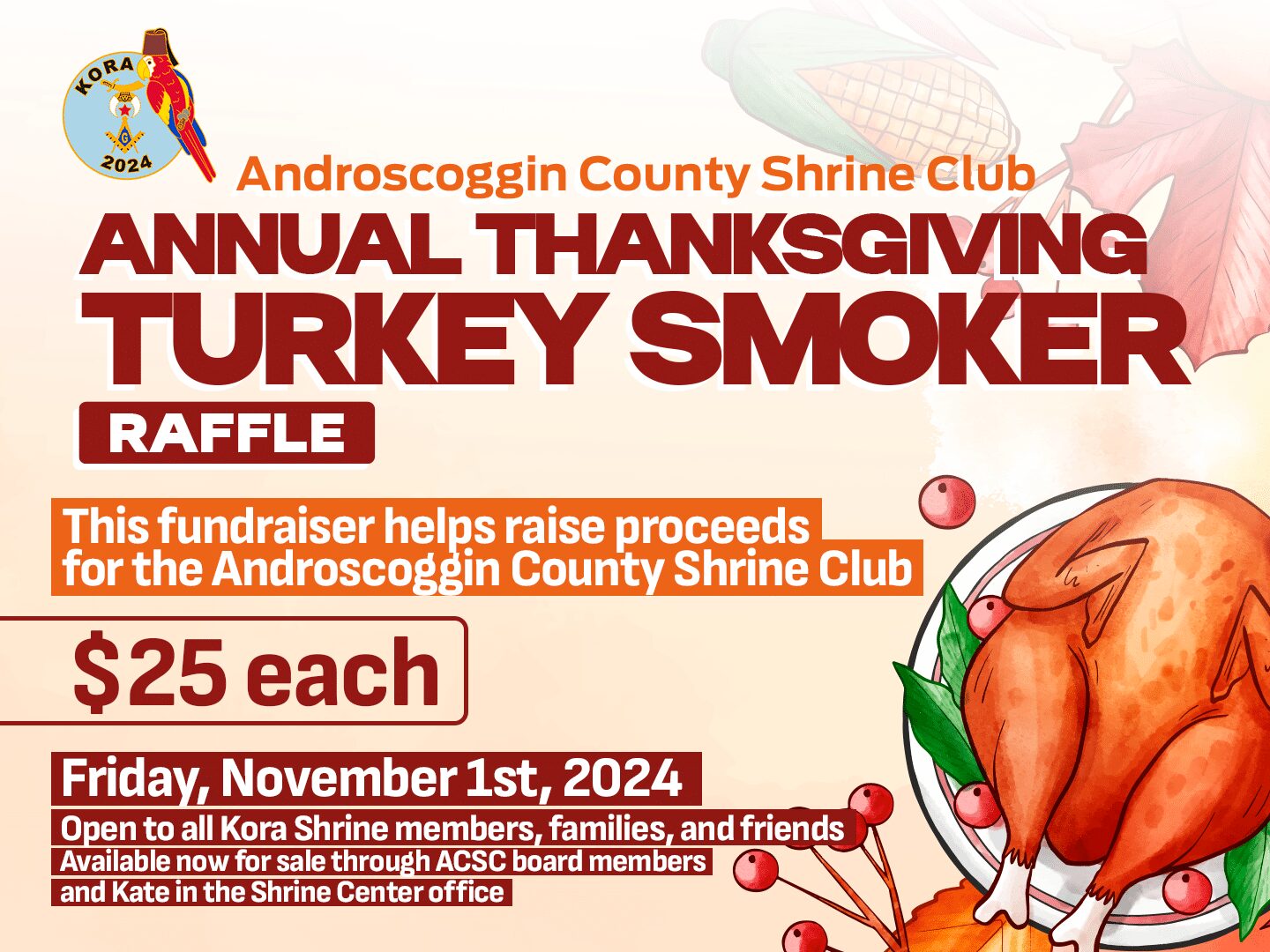 Join Us for the Androscoggin County Shrine Club's Annual Thanksgiving Turkey Smoker Raffle! The Androscoggin County Shrine Club is excited to announce our Annual Thanksgiving Turkey Smoker Raffle! This special event is your chance to win a smoked turkey just in time for Thanksgiving, while helping raise crucial funds for the Androscoggin County Shrine Club. […]
